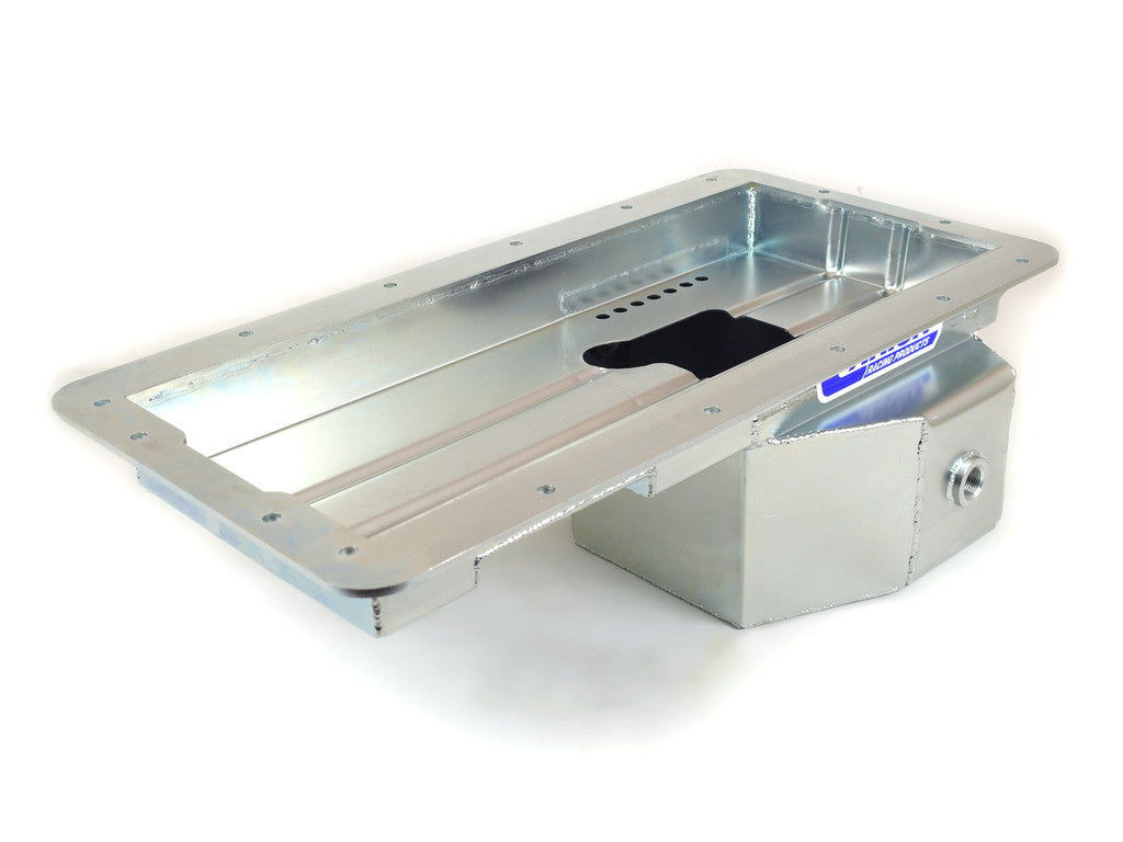 This 15-730 Ford 5.0 Coyote oil pan is designed for 96-04 and 05-12 Mustangs that are used on the street or strip. It's rear sump design offers extra capacity without sacrificing ground clearance and includes a slosh baffle for oil control to keep the oil off the crank shaft under heavy driving conditions.