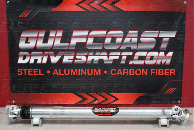 We build each 1350 series driveshaft with 3.5” x .125 wall Kaiser KDS4-T8 aluminum tubing*, aluminum yoke shaft and spline sleeve assembly, weld yoke, and flange yokes, all components from Sonnax*, upgraded 1350 series non greaseable performance u-joints from NEAPCO, and upgraded hardware for the rear flange. Factory hardware is reused on transmission flange. All driveshafts are high speed balanced for performance application.