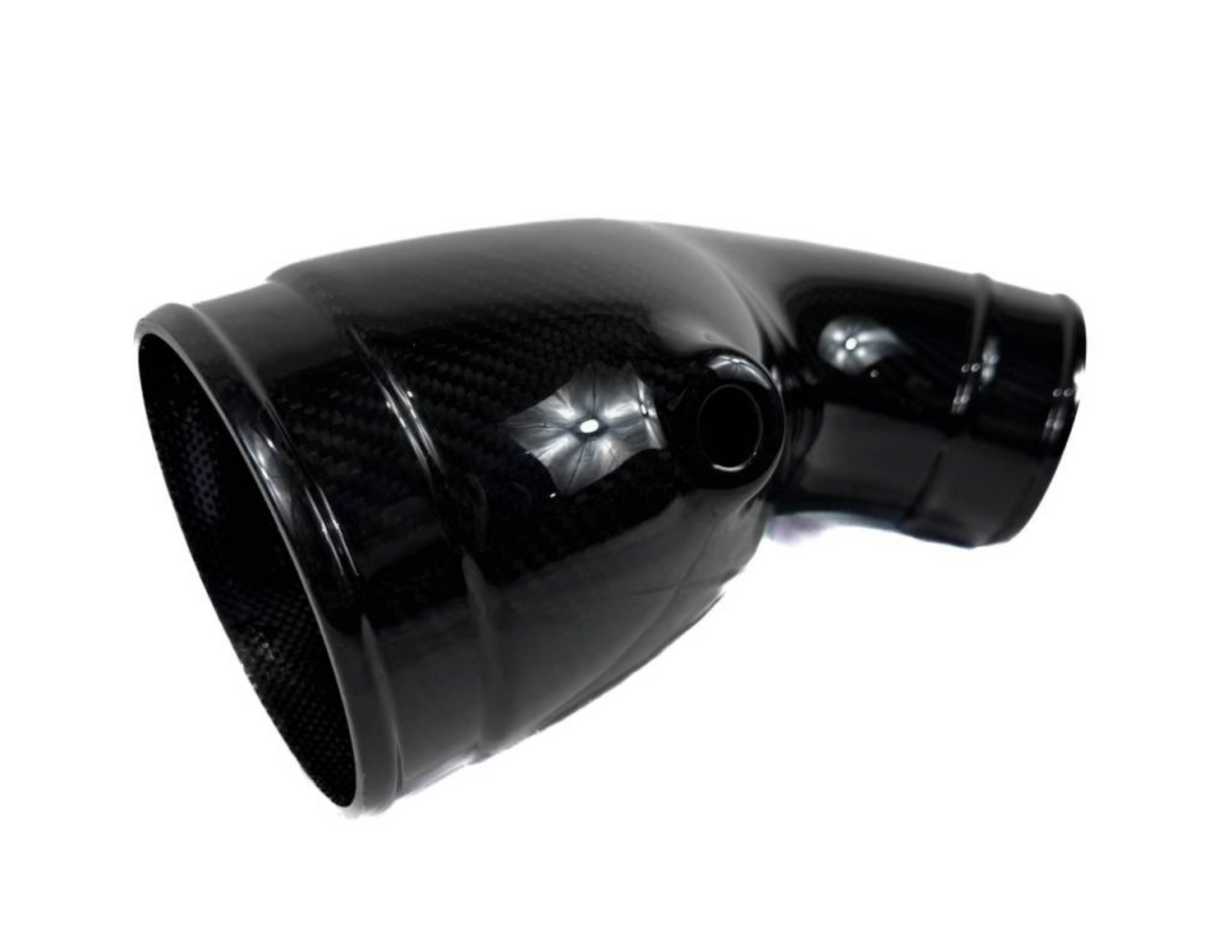 Enhance your Whipple Supercharged F-150 with our premium carbon fiber air tube. Designed for the 2015-2024 Whipple Supercharged F-150 5.0L Coyote models with our stage 2, 132mm roval throttle body, this air tube ensures OE-like fitment and quality while adding a sleek, sporty aesthetic to your engine bay.