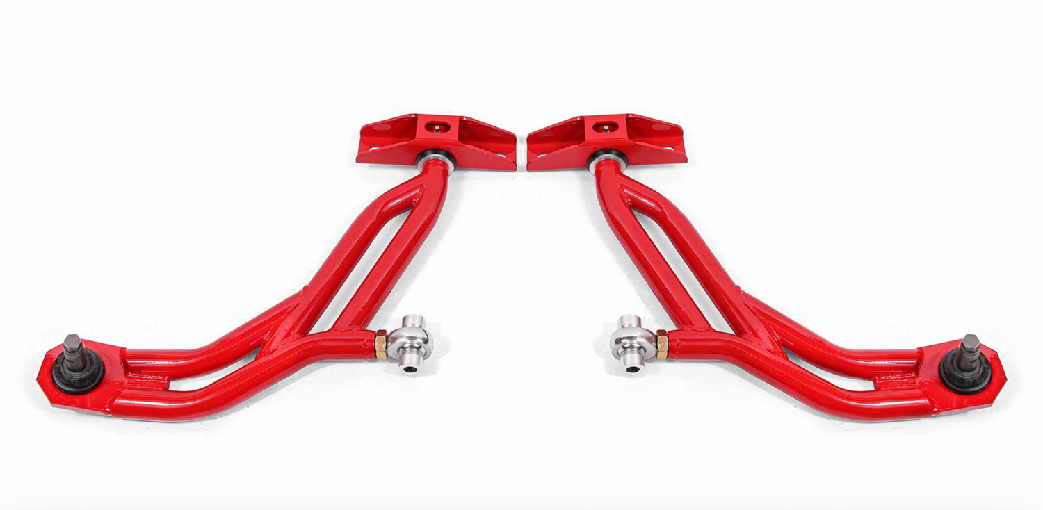 BMR Suspension AA757 Adjustable Lower A-arms are available in black hammertone and red powdercoat for long-lasting good looks. Installation time is 3-4 hours. Proudly made in the U.S.A.