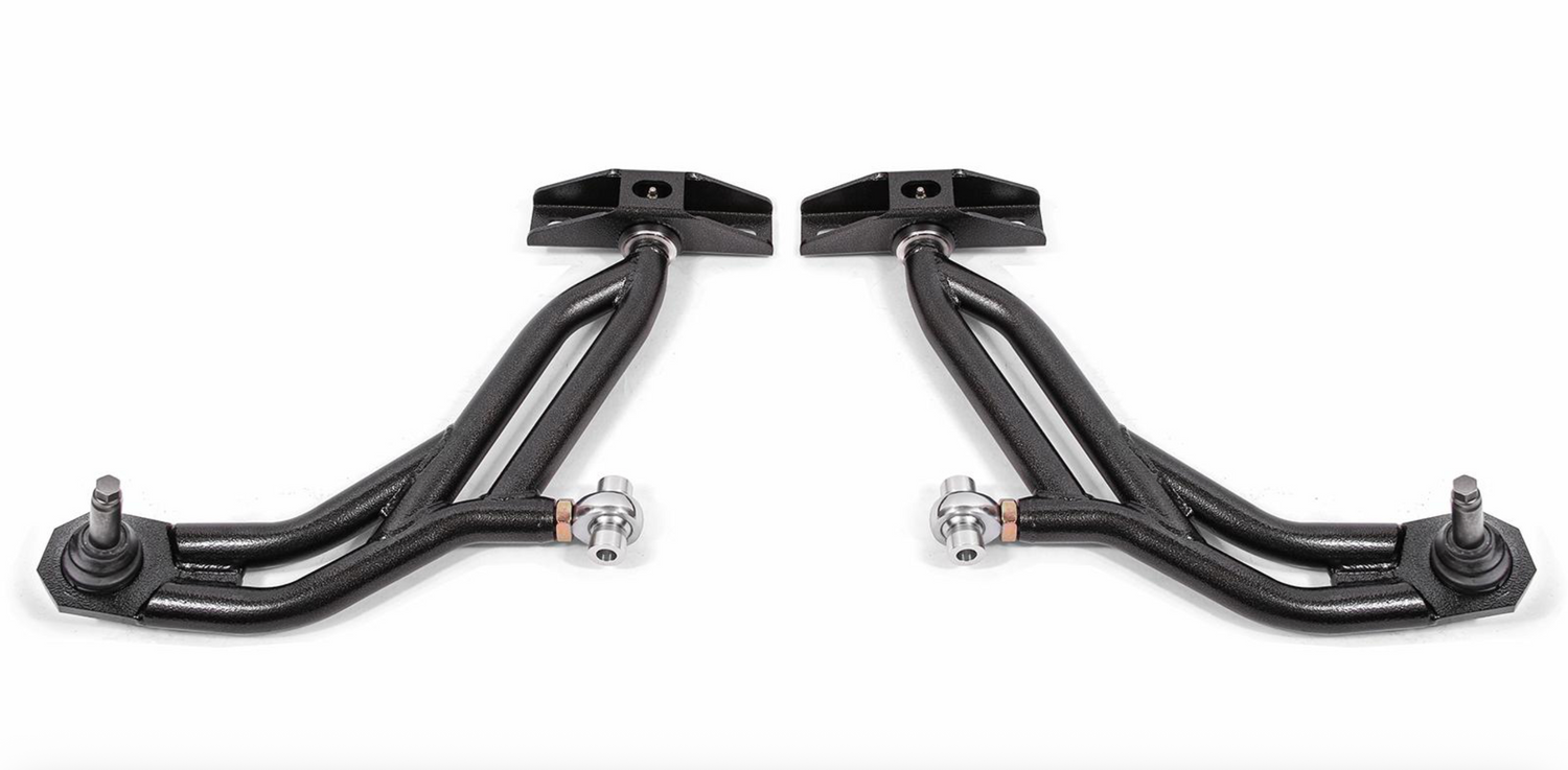 BMR's AA757 lower A-arms eliminate A-arm deflection, greatly improving steering feel and response in normal and performance driving situations. The rod ends and Delrin bushings add strength and reduce deflection over the stock rubber bushing. The means you get great performance. Designed for street performance, drag race, and handling, and pro-touring applications, BMR lower A-arms are engineered to give you improved geometry and increased lateral grip during cornering situations.