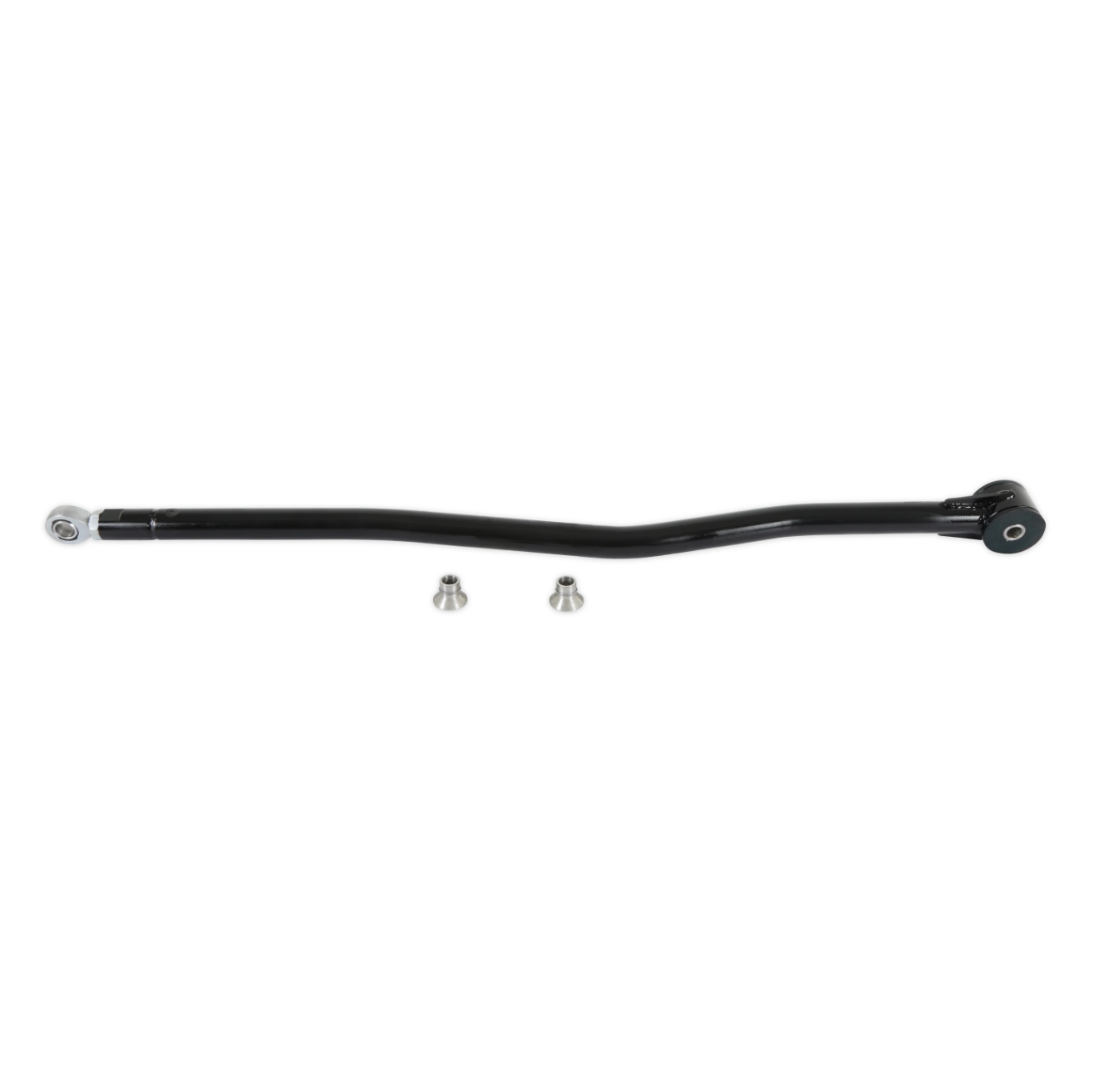 Embark on the ultimate off-road adventure with our NEW adjustable Panhard Bar, expertly crafted for your 2021+ Ford Bronco. Engineered from rugged .25" wall, 1.25" OD steel tube, it embodies durability and versatility for challenging terrains. The premium heim joint and machined acetal copolymer bushings offer precise suspension tuning for recommended 0-3" lifts, ensuring a smooth ride on the toughest trails. Dressed in a resilient black powder coat, it stands up to the elements, while the extra clearance for aftermarket differential covers accommodates your customization needs. Keep your rear end properly centered with this essential upgrade, where strength and adaptability converge for an unparalleled journey off the beaten path!