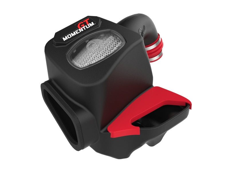 Momentum’s unique filter-to-housing interface was built to feature the largest air filter possible. This 8” tall 360-degree radial flow air filter features a 4" flange and our oil-free Pro DRY S media with three layers of synthetic media for maximum convenience. Its progressive layering provides great filtration efficiency and dust holding capacity, while not requiring the use of oils. This media is best suited for street use. Its inverted top makes for more filter surface area, resulting in longer service intervals, while reinforced metal provides maximum strength to prevent filter collapse. The smooth one-piece sealed housing, constructed of heat-resistant cross-linked polyethylene (XLPE), features our patented filter-to-housing interface. Its innovative design minimizes the total number of parts, making for an easy installation. A clear sight window allows for hassle-free filter inspection, without having to disassemble your system. The housing connects to the factory air inlet duct but also captures air from the opening in the fender to provide more immediate cool air to the engine. This system features high quality, computer-designed, dyno-tuned intake tubes to achieve maximum power gains while maintaining a perfect fit. Their XLPE material is heat soak resistant and extremely durable. To maximize the amount of air going to this air intake system, aFe POWER D.A.S. 50-70119S and D.A.S. XL 50-70119A are available and sold separately (Only Fits Toyota Tacoma). The Dynamic Air Scoop will replace the factory air inlet duct and provide more cold air to the air intake system directly from the front of the vehicle. Stainless-steel clamps and red silicone coupler are included for strength and durability. Momentum GT intakes are designed with fewer parts for a fast and easy installation.