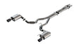 This 3" diameter True Dual Borla(r) Cat-Back(tm) system features a merge X-Pipe for increased performance and improved sound. This system is designed for use on cars WITHOUT the Active Exhaust feature. It features the classic S-Type sound with no drone inside the vehicle and 4" carbon fiber with black anodized centers tips. Systems with bright chrome on T-304 stainless steel tips, and black chrome on T-304 stainless steel are also available. Borla(r) Cat-Back(tm) and Axle-Back exhaust systems feature patented straight-through and multi-core technology designed to unleash hidden horsepower. Increased exhaust velocity adds power, driving excitement, fuel economy, and the distinctive Borla(r) Sound of Power respected by motoring enthusiasts everywhere. Each system is built from premium T-304 stainless steel, superior to T-400 series knockoffs (such as 409), to give you the absolute best in performance and durability. Ultra-smooth mandrel bends ensure maximum flow & power, and precision computer numerical control (CNC) manufacturing ensures an accurate fit. Best of all, Borla(r) stands behind every system with a Million-Mile Warranty. Just what you'd expect from the world's most experienced (and most winning) exhaust brand.