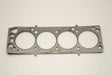 Comprised of multiple embossed layers of stainless steel with the outer layers utilizing a Viton rubber coating. Compressed operating thickness is 0.036". Cometic MLS (Multi-Layer Steel) Head Gaskets provide maximum sealing performance for todays high output engines and require no sealants. MLS gaskets are ideal for both aluminum heads to aluminum blocks and aluminum heads to cast iron blocks. They can withstand the shearing force created by the two materials. MLS gaskets have increased strength because they are comprised of multiple layers of stainless steel; which also creates the ability to rebound and resist corrosion. The outer layers are embossed and coated on both sides with Viton (a flour elastomer rubber based material that is heat resistant to 250 C/ 482 F). Viton is designed to meet the demands of a variety of harsh sealing environments, load conditions, and surface finishes. The center or shim layer is uncoated stainless steel, which can be varied to accommodate multiple thickness requirements.