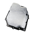 Adhesive backed transmission pan heat shield installs between the transmission pan and cross over pipe on JK Wranglers with VLP 42RLE 4 Speed transmissions. It blocks radiant heat from the exhaust, preventing heat soak into the transmission pan and fluid. The result - cooler transmission temps, improved performance, and longer component life.