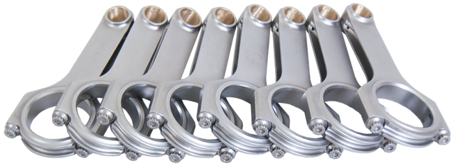 Forged 4340 steel H-Beam connecting rods are forged from a two-piece forging and feature a fully machined and shot-peened surface. Sizing is held to exact tolerances. Sold as a weight-matched set. Recommended for competition use.