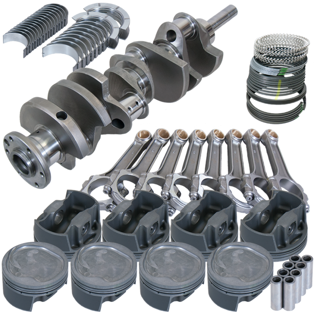 4.140" Cast Crank,6.700" I-BEAM Rods,7/16" ARP 8740 BOLTS,Forged 4032 MAHLE -28CC INV. DOME 4.390" PISTONS,PLASMA-MOLY FILE-FIT RINGS,KING SI Rod/MAIN BEARINGS.