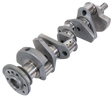 Eagle featherweight forged 4340 steel Cranks feature a non-twist forging, lightweight counterweight design to reduce rotating weight, .125" fillet radiuses for superior strength so chamfered / narrowed bearings required, nitrided surface and micropolished. Intended for restricted-class competition use. Lightweight rods and pistons required for ease in balancing.