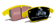 EBC Yellowstuff is an aramid fibre based brake compound with high brake effect form cold and is possibly one of the first ever compounds that can be used for STREET AND TRACK DRIVING. These pads do not require warm up but do get even stronger under the heat of hard driving. These are not a low dust pad and if your desire is for a low dust premium street use pad, you should consider EBC Redstuff.When considering full race use, Yellowstuff has been a strong favourite, having been used for two years in the Swedish Camaro Cup and at numerous other race events where a stock caliper system is fitted.It is also the choice of 90-percent of the Mazda MX5 Miata competitors in the UK race series and has an unblemished record as rotor friendly track pad for vehicles up to 2000 lbs weight or 200 BHP.In the USA the SCCA and NASA drivershave been testing Yellowstuff with feedback and good reports POURING in from a 543 test driver major market proving event with these groups. Read that figure again 543 test drivers.There is no guesswork here.