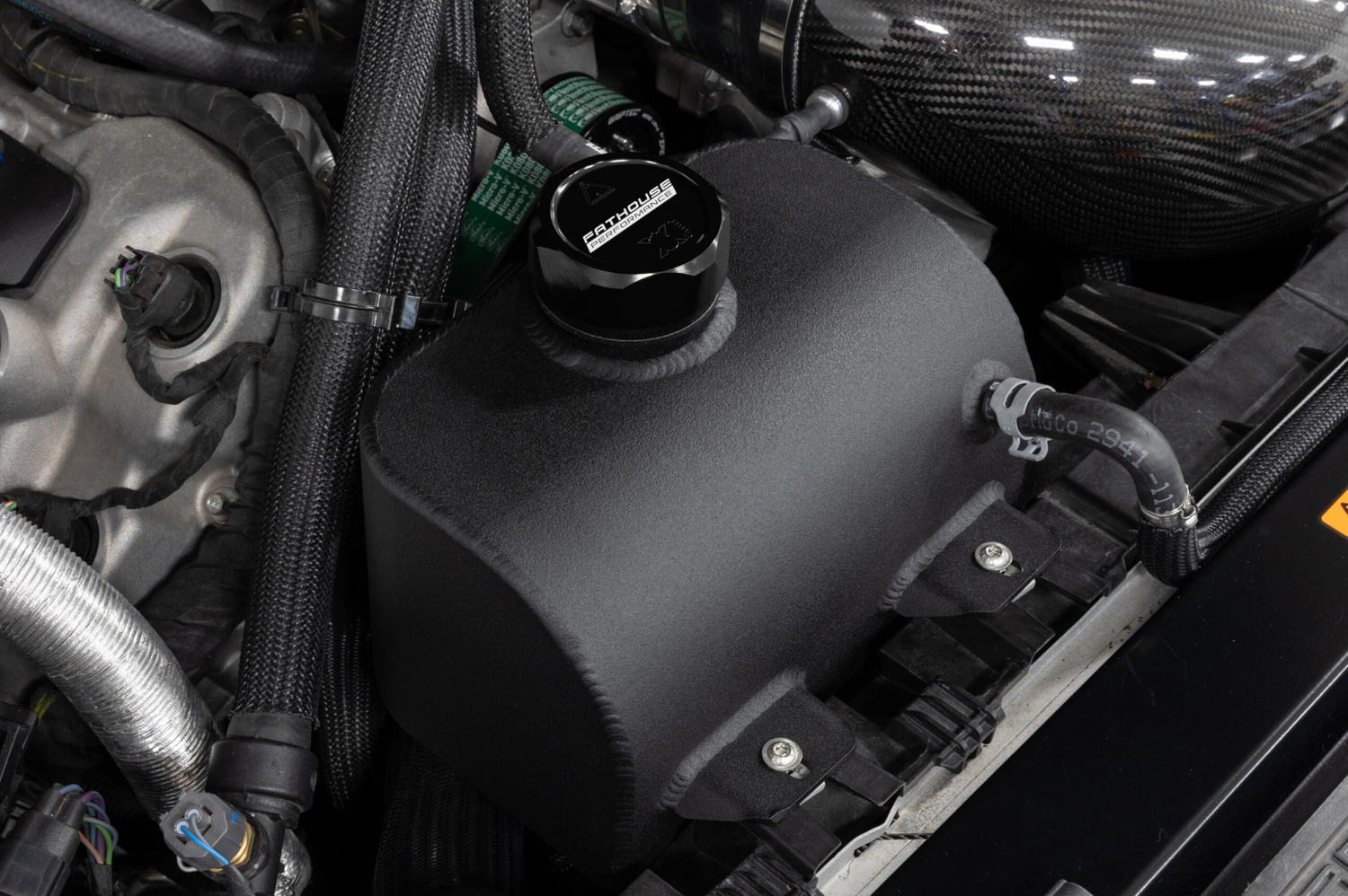 Replace your factory plastic coolant reservoir with our fabricated Fathouse Performance coolant reservoir. Designed to work with OEM vented coolant cap. Optional anodized billet cap available. Mounts in OEM location and utilizes OEM lines.