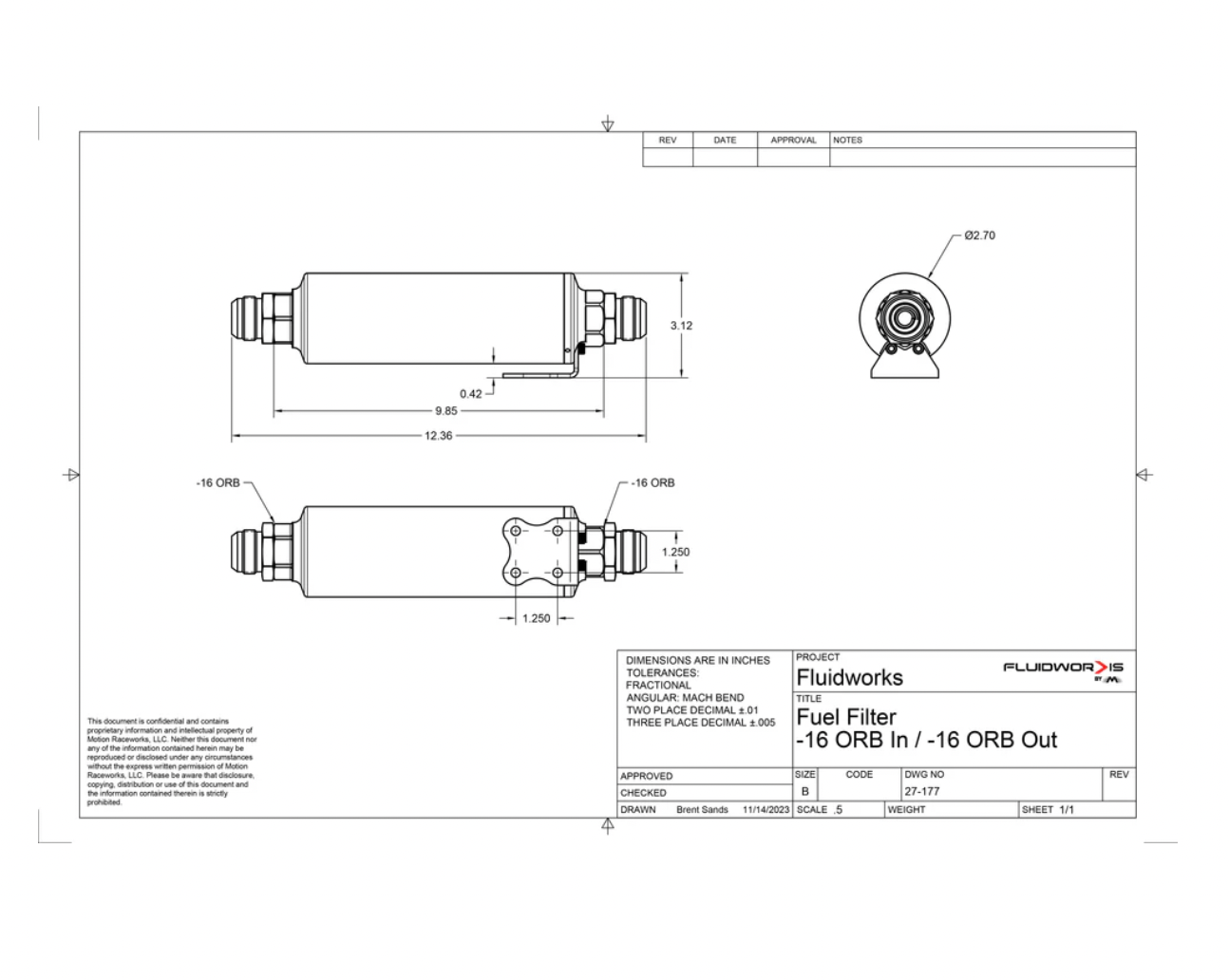 Fluidworks Single Outlet -16AN / Single -16AN Inlet Fuel Post Filter w/ integrated mount (10 Micron) 27-177