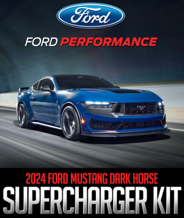 Ford Performance Parts is pleased to announce our supercharger kit for the 2024 5.0L Mustang GT and Dark Horse. Developed by Whipple Superchargers in partnership with Ford Performance Engineering, this kit delivers on performance. The Ford Performance package delivers 810 HP @ 7,500 RPM and 615 lb.-ft. of torque @ 4,800 RPM for active exhaust equipped Mustangs. (10 HP less for non-active exhaust).