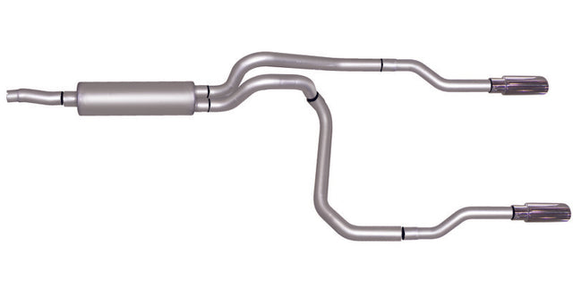 For the enthusiast who wants an awesome look and aggressive throaty sound this Dual Split Cat back exhaust is for you. Gibson Exhaust Systems decrease backpressure and produce more torque and increased horsepower. Typical gains average of 15-20 horsepower. Stainless dual Tip exit straight out the back. Works with most bumpers, roll pans and trailer hitches. Exhaust sound is louder under towing conditions. Hassle Free bolt- on installation. No welding required. Backed by a Lifetime Limited Warranty.