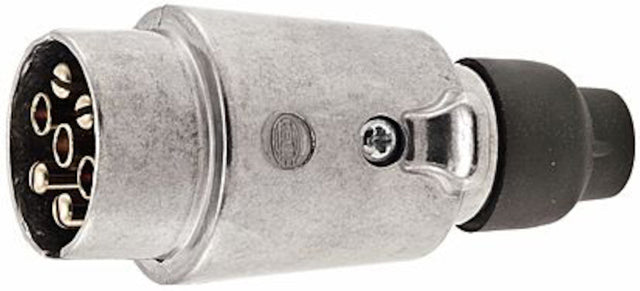 The 7-pin plug-in system 12 V according to ISO 1724 / ISO 3732 is the most widely used system for electrical connections between towing vehicle and trailer with 12 V on-board network. The system is primarily used for applications with average requirements. It consists of a standard connector, type N, according to ISO 1724 and an additional connector, type S, according to ISO 3732. The additional system differs from the standard system by its white housing, contact inserts and interchangeable contact arrangement.