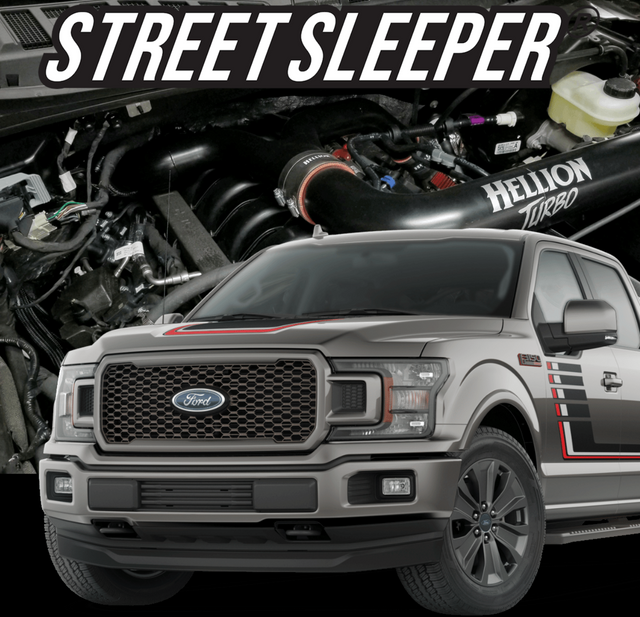 This new generation kit is capable of 600 to 2000+ rwhp! 2015+ F150 performance is now taken to the next level! We have been working on this new system for some time, and the results have been above and beyond our wildest expectations. We have built an all new kit, a full redesign. This new F150 system takes the attributes of our already record breaking “Street Sleeper” Mustang kit, and applies them to the up and coming F150 market. The new “STREET SLEEPER” system fits the 15-24 F150– 2×4 or 4×4– any cab configuration, and comes standard with the legendary Hellion 62/62R ball bearing turbochargers. This standard combination can make well over 1200 rwhp. If higher than 1200 is desired, multiple turbo options are available depending on your power goals. The 64/66R option can take you well over 1600. The air inlets route all the way up to the factory air box (filters can be placed right on turbocharger if chosen, the choice is yours!). Designed for all weather conditions, this all-in-one kit can take your F150 to the next level.