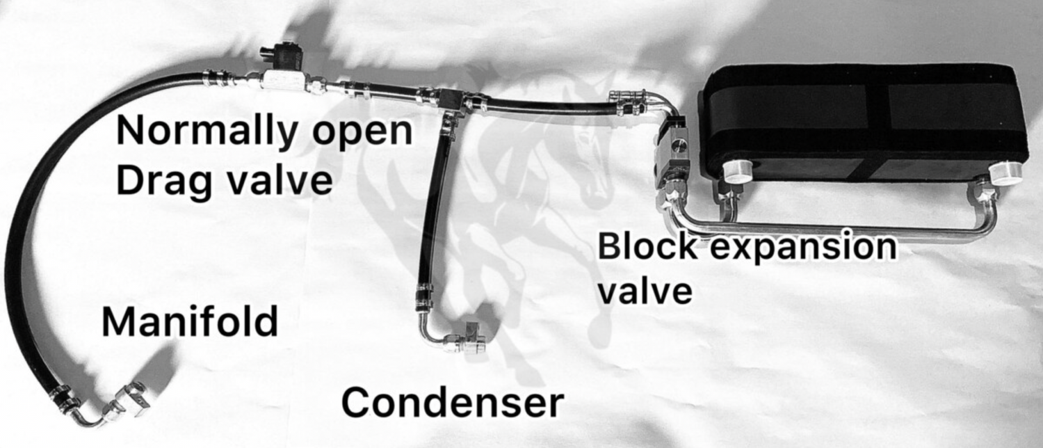 With drag race mode, When activated using rocker switch, refrigerant from the AC system is diverted from the cabin to the chiller unit.