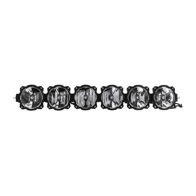 FEATURES-Powered by Gravity LED G6 optical inserts efficient, powerful, patented-Patent-pending Infinity Ring system enables the conversion of the Pro6 from straight to radius format in seconds (Patent-pending Application 14/704,736)-Signature KC modular design is expandable to different widths-Extremely high output with very low amperage draw-Multiple G6 beam patterns available Spot, Driving, Wide-40LIGHT PERFORMANCE-Raw Lumens: 13,800 lm-Lux @ 10 Meters: 5,150 lx-Candela: 515,000 cd-Beam Distance (Meters): 1,435mSPECIFICATIONS-Wattage: 120W-Amp Draw: 9.78A-Voltage: 9-32V-Dimensions: H - 6.06" x D - 3.33" x W - 39.125"PARTS INCLUDED-(1) Pro6 LED Light Bar-(6) Light Covers - Black w/ Yellow KC Logo-Deluxe Plug-N-Play Wiring Harness with 30A LED SwitchPERFORMANCE Gravity LED OPTICSPatented Gravity LED G6 optical inserts provide exceptional efficiency and light output. 20W, G6 optics are available in Spot, Driving and Wide-40 patterns. INFINITY Ring SYSTEMThe Infinity Ring system provides a race-proven, adjustable linking system featuring expandable widths, modular beam shape and a radius or straight setting between each ringUNIVERSAL END MOUNT SYSTEMThe Pro6 LED light bar comes ready to fit most standard LED bar widths and is designed with high-strength aluminum end mounts. This universal mounting design easily attaches to KC mounts on your Jeep, Truck or UTVRACE PROVEN STRENGTH & DURABILITYInspired by endurance racing and tested by KC athletes worldwide, the Pro6 is set to break all performance barriers while providing the most durable, reliable and scalable light bar design available today