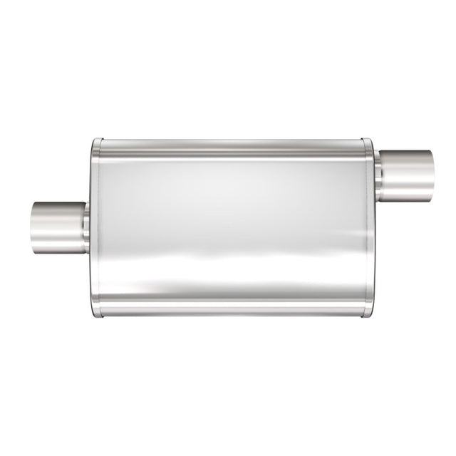 The MagnaFlow XL 4 X 9in. Oval Multi-Chamber Performance Exhaust Muffler 13259 features a straight-through, weight-optimized reversible design with a perforated stainless steel core featuring baffles and tuning gates, enabling it to deliver the powerful signature sound and dyno-proven performance that's made MagnaFlow a household name. Muffler 13259's oval-shaped, 4x9x18in. body and universal 3/3in. diameter inlet/outlet layout enables flexible installation options to match the spacing requirements of your vehicle. Professional installation is highly recommended. 13259 is produced using advanced CNC precision robotic manufacturing techniques and features durable, corrosion resistant stainless-steel construction, all backed by MagnaFlow's limited lifetime warranty.