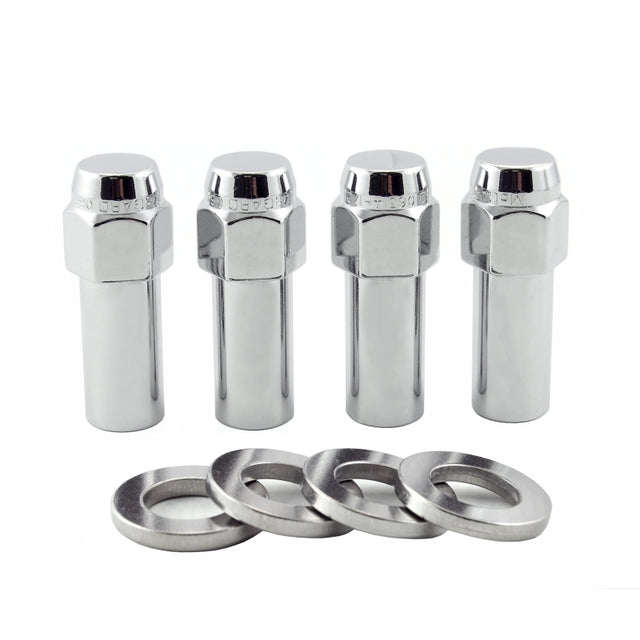 Chrome plated lug nuts lead a tough life.; Think about it, harsh elements, nasty corrosive wheel cleaners and lead-foot drivers.; Not to mention overzealous impact guns and loose fitting lug wrenches.; This kind of treatment destroys ordinary lug nuts which turns even the best looking wheels ugly.; Tough Nuts can take the punishment and keep your wheels looking beautiful.; Tough Nuts are guaranteed for life not to rust, chip or peel.; McGard manufactures lug nuts in the USA to meet or exceed O.E.M.; standards for safety and durability.; Every lug nut is fully machined from restricted chemistry steel made specifically for McGard and through-hardened for its unsurpassed level of safety.; McGard's plating process includes several layers of nickel and one layer of microporous chrome producing a superior finish while protecting against rust.; Tough Nuts are designed and built for the real world, because life is tough.; Extra Long 1.365 Shank length for use with wheels requiring extra long shanks, such as Cragar/Weld and Weld Racing wheels.; Contains polished stainless steel center washers.; This product may contain globally sourced materials/components.