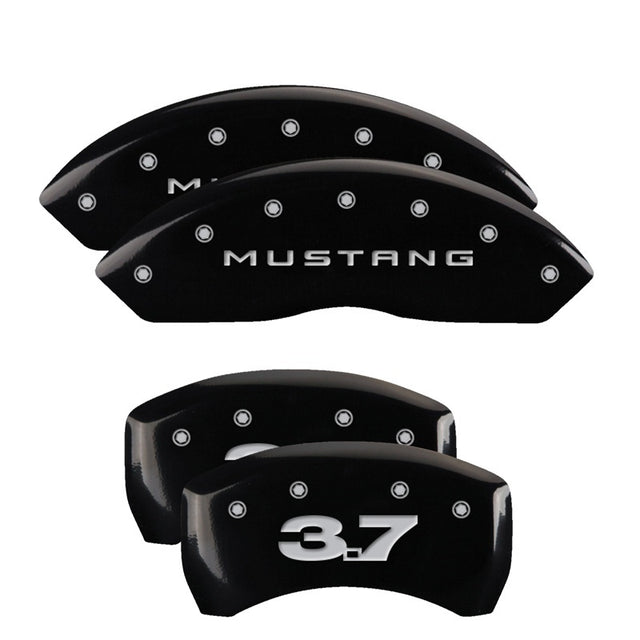 MGP 4 Caliper Covers Engraved Front Mustang Engraved Rear 37 Black finish silver ch