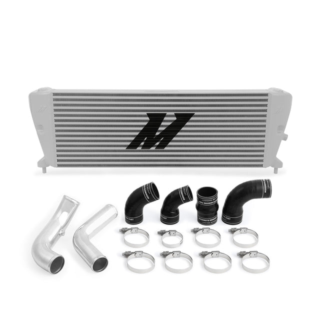 The 2011+ Ford Ranger 3.2L diesel is one of the most capable small trucks on the planet and it deserves a cooling system that's equally capable. That's why Mishimoto has developed a performance intercooler kit that's as capable as the Ranger itself.--This Mishimoto performance intercooler kit features a high-quality bar-and-plate intercooler and mandrel-bent aluminium intercooler piping for a blend of durability and performance. Our intercooler's bar-and-plate core is precision TIG-welded to durable cast-aluminium end tanks. This design gives the intercooler increased durability and resistance to heat and pressure. The Mishimoto intercooler also boasts a 146% increase in core volume and 159% increase in fin surface area over the stock intercooler for even more efficient cooling. Our intercooler pipes are mandrel bent to eliminate harsh bends that impede airflow and rob performance. The aluminium construction means that these pipes will also outlast the factory rubber and plastic hoses. This intercooler kit is available with a stealth black or sleek silver intercooler and micro-wrinkle black powder coated or polished pipes to suit any look.--This Mishimoto 2011+ Ford Ranger 3.2L Diesel Performance Intercooler kit includes mounting brackets, couplers, and clamps for easy installation and is backed by our Mishimoto Lifetime Warranty for a lifetime of performance.