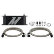 Proper oil temperature regulation is key to extending and preserving the life of your stock or high performance engine. Keep your temperatures in check with the Mishimoto universal oil cooler kit. This kit is applicable for most vehicles and includes all key components for reducing oil temperatures and providing your engine with extra protection against oil degradation.--This kit includes a billet anodized aluminum sandwich plate in either standard or thermostatic form. The optional Mishimoto thermostatic sandwich plate provides additional temperature control and will limit oil flow to the cooler until optimal temperatures are reached, making it ideal for those in cooler climates. The included core is our proven Mishimoto 16 row stacked plate cooler which can withstand high fluid pressures and significantly reduce oil temperatures while exhibiting minimal pressure loss.--This kit includes both a -16 and M20-1.5 sandwich plate adapter which supports fitment for most makes and models. This kit also includes pre-assembled stainless steel braided oil lines with -10AN fittings and dowty seals for durable, leak free connections. Whether you are piloting a boosted rotary or blown small block the Mishimoto universal oil cooler kit will provide the efficiency you need to stay on the track and out of the shop. As with all our products this kit includes the Mishimoto Lifetime Warranty. Please note: Mishimoto fully inspects and cleans all products prior to packaging. However, it is recommended that customers flush the oil cooler with one quart of clean oil prior to installation to remove any debris accumulated during shipping. Please feel free to contact us at support@mishimoto.com if you have any questions.