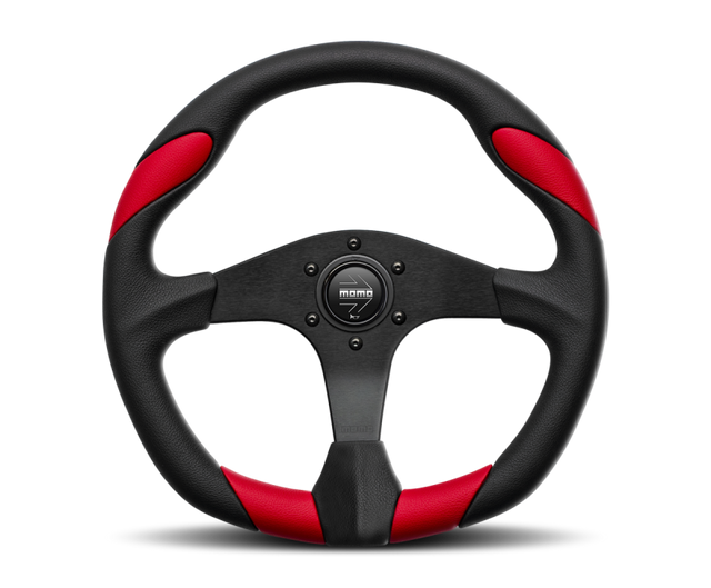 Momo Quark Steering Wheel 350 mm - Black Poly/Black Spokes/Red Inserts