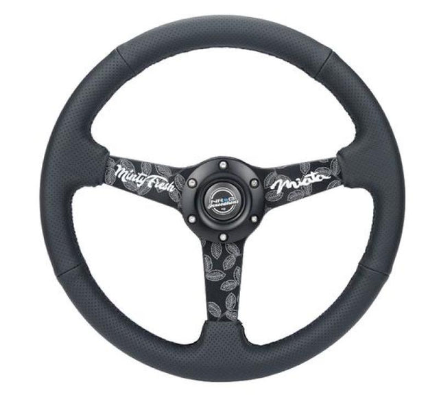 NRG Sport Steering Wheel (350mm/ 1.5in. Deep) Black Etched Spokes/ Black Leather w/ Black Stitch