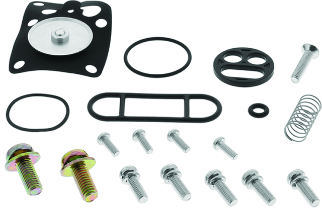 Kit includes all face screws, tank bolts, face gasket, tank gasket, diaphragm, O-rings, wave washer, and miscellaneous components necessary to rebuild on fuel tap. Non-rebuildable, riveted Honda specific kits include special drill and self-tapping screws along with instructions for easy and inexpensive rebuild.