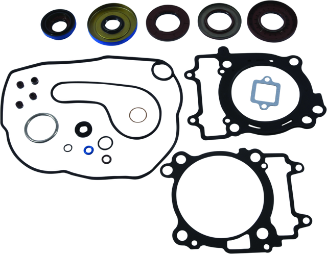 Set includes all gaskets and oil seals necessary to rebuild the engine and transmission, including output shaft, water pump, clutch, shift and starter seals.
