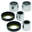 Ensure your swingarm bearing assembly is properly rebuilt with this repair kit. Needle bearing shafts are made with 52100 bearing steel that has been hardened and precision ground. All metal bushings are case-hardened and plated to prevent wear and corrosion. POM composite washer bearings replace thrust needle washers for increased service life and superior resistance to water and dirt.