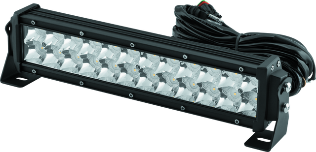 The QuadBoss Double Row LED Light Bar features high-intensity, combo flood and spot beam LEDs housed in a heavy-duty, aluminum casing with an abrasion and shatter-resistant lens.