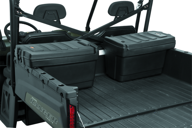 Organize and secure equipment and supplies in two Cargo Boxes to maximize bed space. Quick-mount pegs allow for easy installation and removal to create multiple configurations. Ranger Cargo Boxes and Ranger Bed Boxes can be used together to create additional storage options.