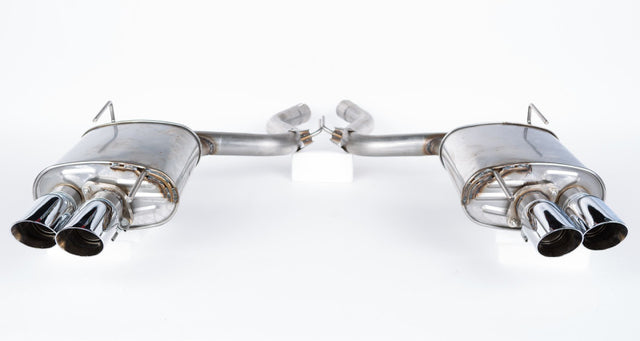 Give your 2015-2017 Mustang GT that ROUSH Performance Look, higher performance and race-inspired exhaust note. The 2015-2017 ROUSH Quad Tip exhaust is an axle back kit with high flow dual tip mufflers, corrosion resistant T-304 stainless steel and high flow mandrel bends. Dual wall chrome flashed tips are a perfect fit with the 2015-2017 ROUSH Mustang Rear Valance. This kit can be easily upgraded to an Active Exhaust with ROUSH Performance's Active Exhaust Module a simple bolt-on process that requires no cutting to the exhaust.This exhaust kit will only fit 2015, 2016, and 2017 Mustang GTs. This exhaust system requires the addition of the 2015-2017 Mustang ROUSH Rear Valance, which comes in two different configurations: Prepped For Backup Sensors part #421919 Not Prepped For Backup Sensors part #421894Check your local noise ordinances for legality.
