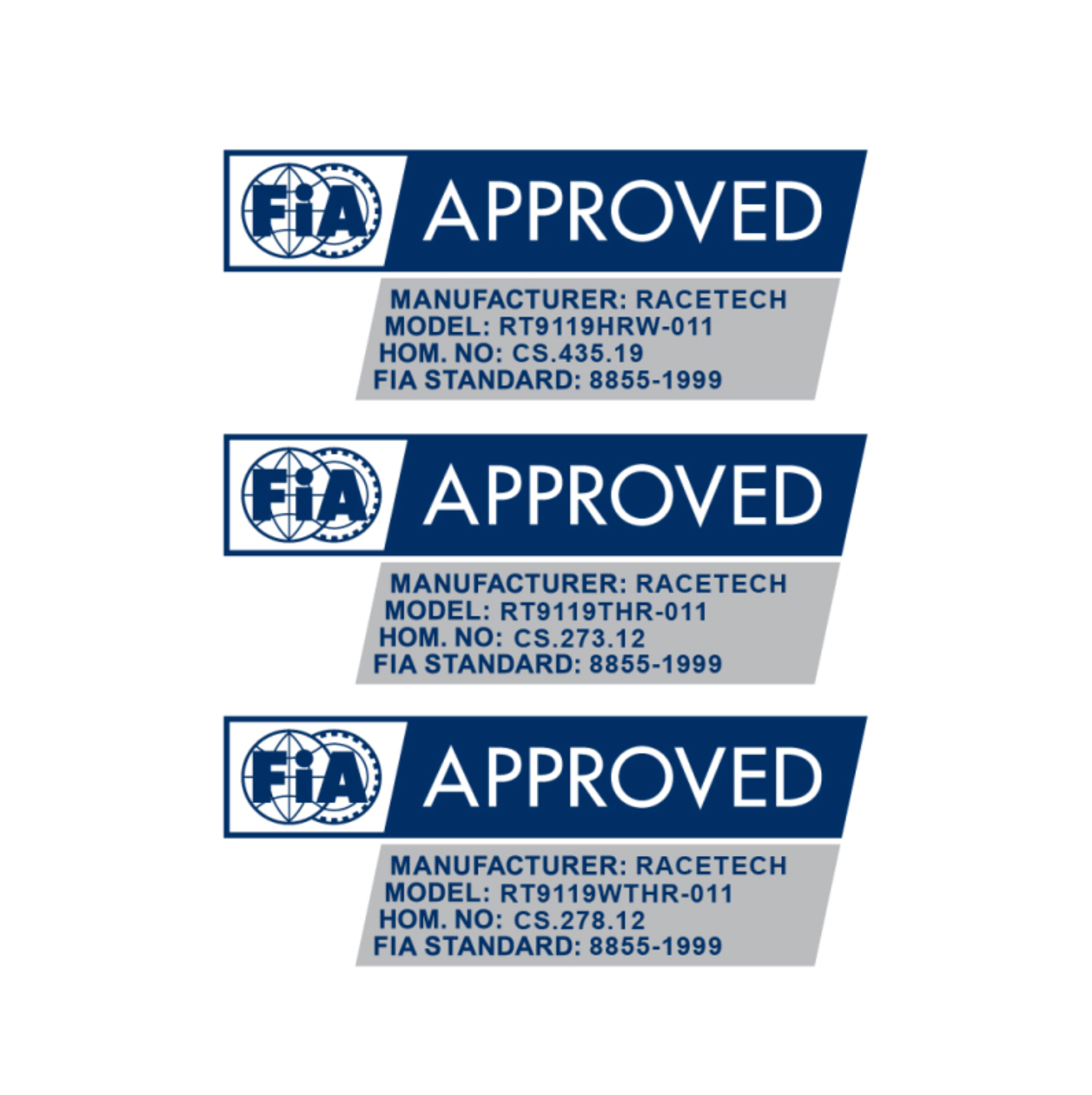 FIA Homologation FIA 8855-1999 Approved (except RT9119WHR)
