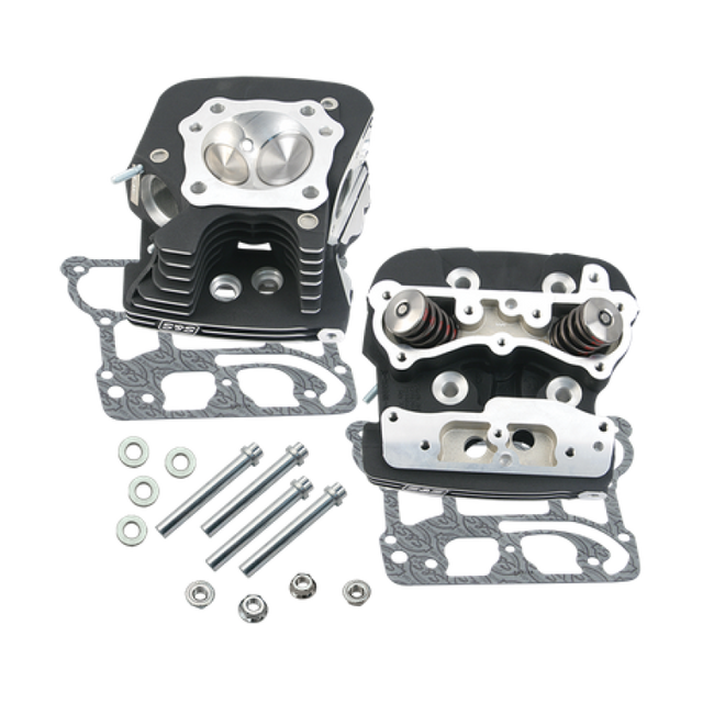 These S&S® Super Stock® high performance cylinder heads are designed specifically for S&S® T124 T2 long block engines for 2007-'16 HD® big twins and 2007-'16 engines with S&S® 124" Hot Set Up Kit installed. 2.000" intake and 1.605" exhaust valves coupled with S&S® ports, supply plenty of air for these big motors. Not machined for S&S® compression releases. The manifold mounting surface specially machined to compensate for the slighty taller cylinders, so a stock length manifold/throttle body will fit. S&S® High performance valve springs allow the installation of camshafts with up to .650" lift. Compatible with stock rocker boxes, exhaust, and intake manifolds.