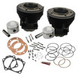 Kit includes S&S 3-7/16" bore high tensile cast iron cylinders, 3-7/16" bore forged stroker pistons with rings and wristpins, head gaskets, S&S stainless steel head bolts with washers, base nuts, base gaskets. This kit can be used in engines with 4-1/2", 4-5/8" or 4-3/4" stroke flywheels. Flywheels of the following strokes may be used for the following displacements: 4-1/2" Stroke - 84" - 8.4:1 Compression, 4-5/8" Stroke - 86" - 9.4:1 Compression, 4-3/4" Stroke - 88" - 10.8:1 Compression.