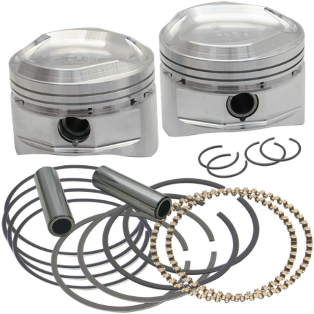 These forged pistons are designed for use in S&S big bore Hot Set Up Kits for HD Evolution big twin engines, and S&S 3-5/8" bore engines with S&S Super Stock cylinder heads and 4-1/4", 4-1/2" and 4-5/8" stroke engines with stock diameter (8-1/2") flywheels. 3-5/8" bore, standard size.