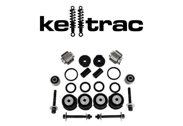 This Level 2 KellTrac S550 Mustang IRS Bushing Upgrade Kit for the S550 Mustang positively locates the rear IRS Subframe, Differential, Knuckles AND the rear lower control arms within the chassis. By filling the voids within the factory bushings on the Subframe Mounts and putting positive pressure on the factory bushing stops, the PosiLoc kit eliminates the deflection found within the stock assembly that leads to poor performance in all scenarios. By completely removing the sloppy rubber in the factory front Lower Control Arm bushing, the Spherical Bearing kit positively and precisely locate the rear axle knuckle assemblies within the chassis. These Lower Control Arm Bearings are made from only the best materials. The factory rubber bushings, or even aftermarket polyurethane bushings deflect under heavy loads - these bearings eliminate that deflection that leads to poor performance in all scenarios. The Monoball knuckle to toe-link bushings replace the factory sloppy and crack prone bushings for precise control and less erratic toe alignment change under loads, and our industry unique differential bushings enable controlled movement of the rear differential assembly. With our Level 2 kit we provide front centering sleeves to complete the squareness of the IRS Subframe when mounting to the vehicle. Whether you are a spiritedly street cruising, drag racing, road racing or auto-crossing this Level 2 KellTrac Bushing Upgrade Kit will significantly improve the performance and feel of your S550 Mustang.