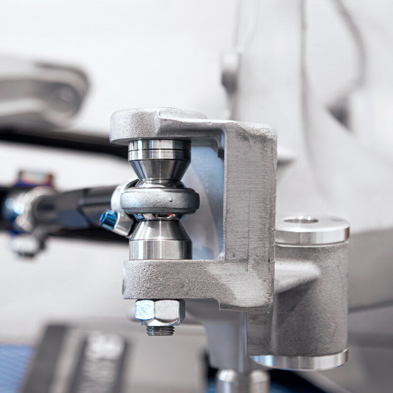 SPL Caster/Thrust/Tension rods provide a wide range of front or rear caster adjustment, allowing precise alignment for optimal turn-in response and to compensate for variances between left and right caster. Any changes to camber will change caster necessitating adjustable arms for a proper alignment. Low-friction, smooth articulating FK Spherical Bearings eliminate the stock mushy rubber bushing to provide a more responsive steering feel. Anti dive (when installed in the front) and anti squat (when installed in the rear) adjustment is achieved with Stainless Steel spacers for the forward mounting position of the trailing/caster arm, allowing you to raise or lower this pivot point and fine tune the balance of your car. These arms are designed to be used with the OEM or OEM style front or rear lower control arms.Our parts are engineered for maximum performance. Billet Aluminum alloy 2024 hex rods are precision CNC machined and gun drilled to reduce unsprung weight while maintaining high strength and stiffness. Our exclusive 360 degree Rotating Clamp design allows for easy access to quickly and precisely locking in your desired alignment settings. Long gone are the days of fumbling with wrenches to tighten jam nuts while trying to trying to keep your bearings oriented correctly. Blue Anodized Titanium hardware shaves even more unsprung weight from the arms and offers superior strength. These arms are designed for use in high performance street and race vehicles