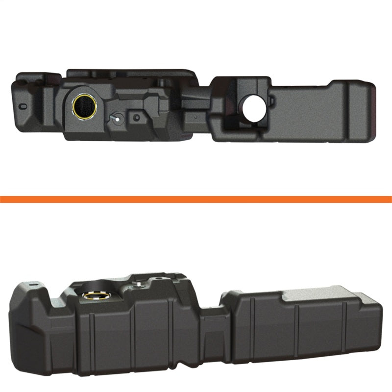 Tank comes complete with black coated, galvanized or stainless steel, mounting straps. Tapered tank features exclusive low fuel trap design so most every gallon can be used, and is approximately only 2 in. deeper than the stock OEM tank. Very similar in appearance to original equipment tank. TITAN's Generation 6 tanks feature the TITAN Torque Ring(TM) OEM style sending unit mounting system for easy, positive installation. At rated highway MPG++, that is 1,314 miles between fill ups!