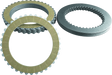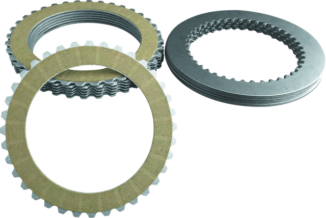 7 Fibers, 7 steels and 1 backing plate. Steel plates have a 41 tooth spline. Fiber plate has 36 outer teeth