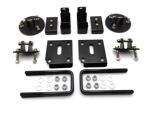 ***Crew cabs and ext cabs will need a leaf kit to complete the 5" rear drop. If a leaf kit is not used, this will net a 6" drop.***