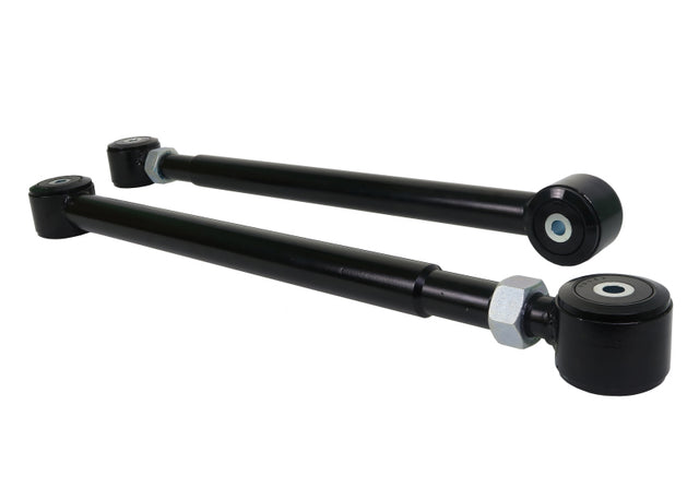 Heavy duty turnbuckle adjustable trailing arms provides incremental on car adjustability of differential pinion angle. This allows you to dial in more or less traction under heavy acceleration. Best matched with Whiteline's heavy duty upper trailing arms for optimum performance.